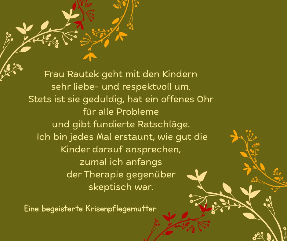 Herzlich willkommen sind vor allem auch Krisenpflegekindern und Pflegekindern mit ihrer herausfordernden Geschichte. Bei meiner Arbeit unterstütze ich gerne zusätzlich mit meinem pädagogischen Fachwissen sowie meinem Erfahrungsschatz als vierfache Mutter.